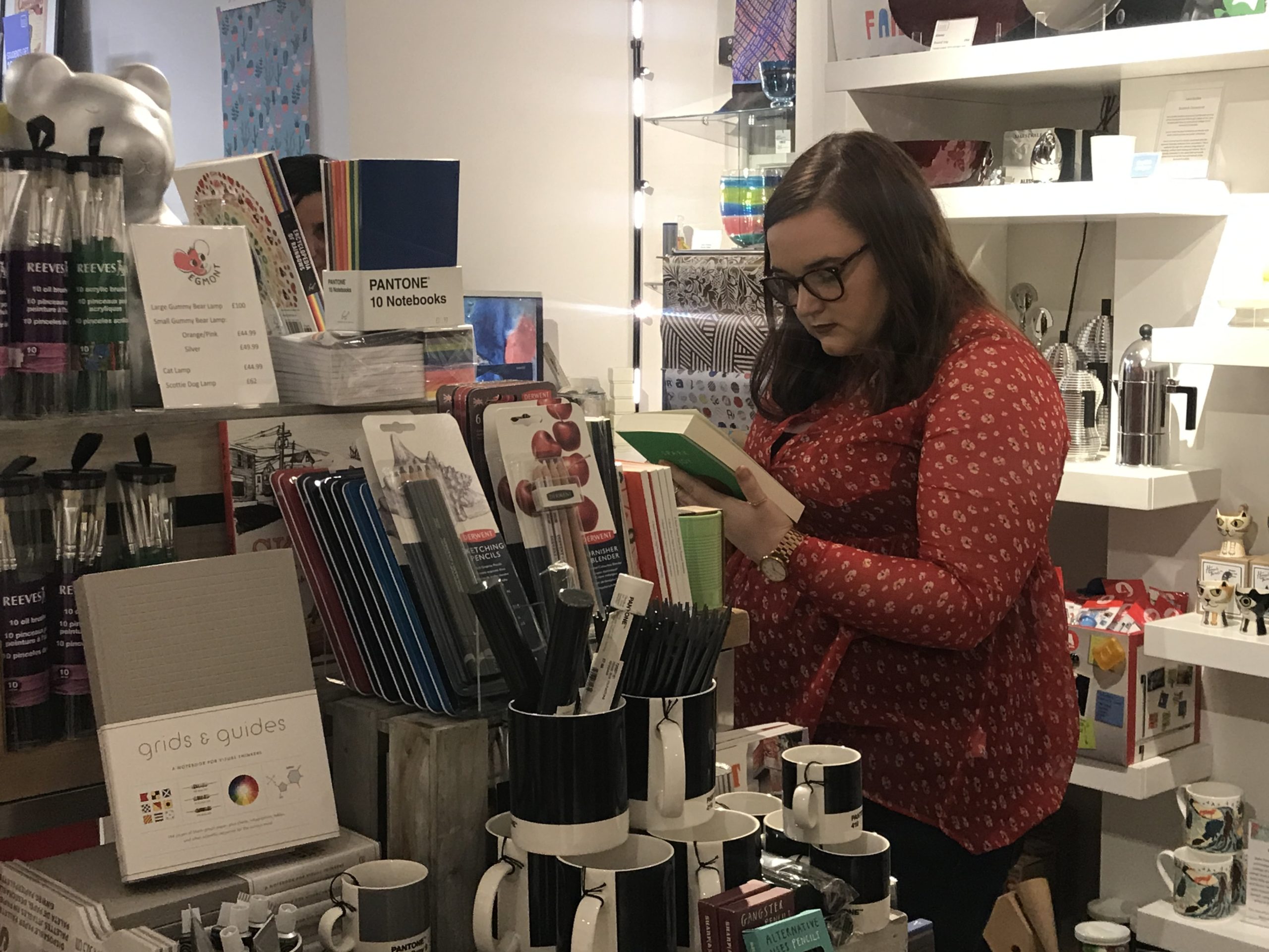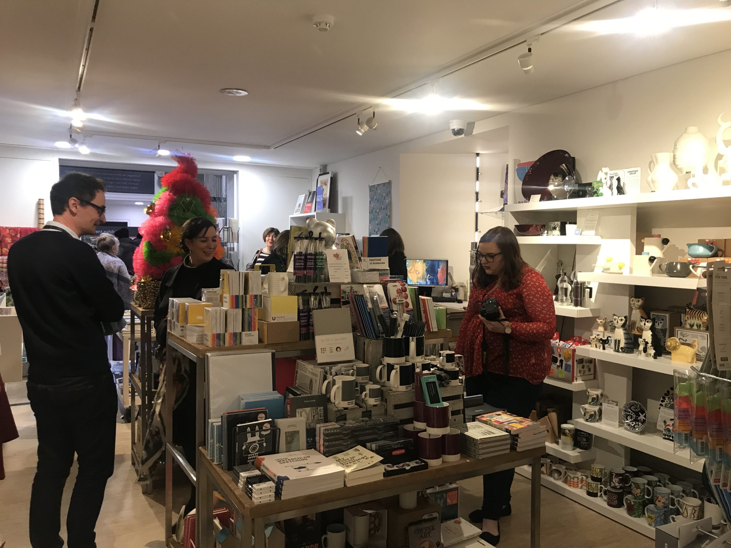 The highlight of the day for us was seeing our bloggers delight at what they found in the Princes Street shop. Tucked away under the main pillars of the Gallery is a hidden little haven of unique pieces for the art lover, jewelry lover, humour lover…. one of our bloggers declared it was made up of her entire Christmas wish list.